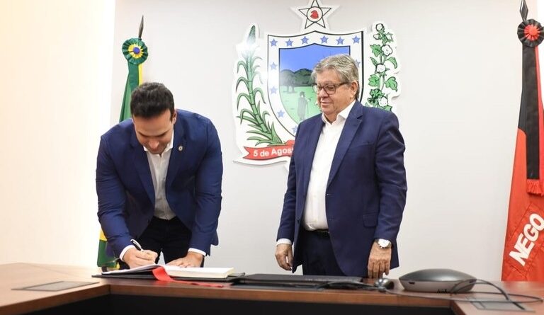 O governador João Azevêdo transmitiu, nesta sexta-feira (17), o cargo para o vice-governador Lucas Ribeiro, que ficará à frente do Governo da Paraíba durante a ausência do chefe do Executivo paraibano, no período de 18 a 28 de outubro.