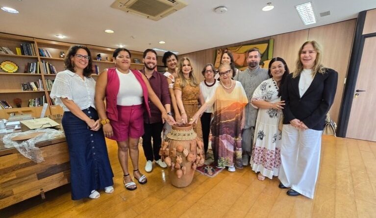 O artesanato paraibano ganhou mais uma importante vitrine. Desta vez, a peça de cerâmica bordada “Ex-voto”, confeccionada pelas louceiras de Cajazeiras, município do Sertão da Paraíba, foi entregue ao Ministério da Cultura, em Brasília. As artesãs foram recebidas, nesta sexta-feira (7), pelo secretário-geral do MinC, Márcio Tavares, e estiveram acompanhadas da primeira-dama do Estado e presidente de Honra do Programa do Artesanato Paraibano, Ana Maria Lins.