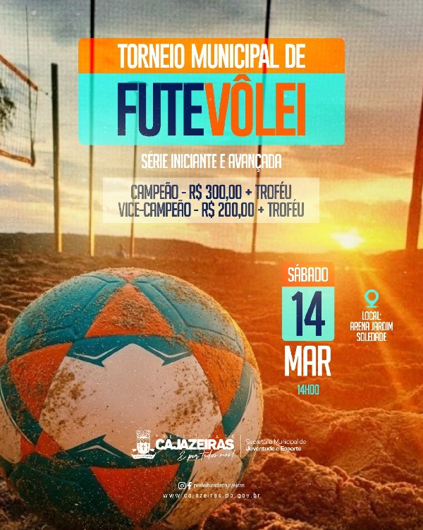 A Prefeitura de Cajazeiras promoverá, no próximo sábado (14), o Torneio Municipal de Futevôlei, reunindo atletas e amantes do esporte em um momento de integração e incentivo à prática esportiva.